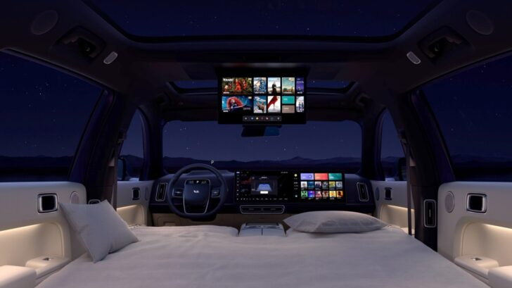 Он получил три 16-дюймовых дисплея в салоне, возможность подключения к сетям 5G, сертифицированную Dolby Atmos акустику и трансформируемые сиденья, из которых можно сделать полноценную кровать размером 1,5 на 2,4 м.