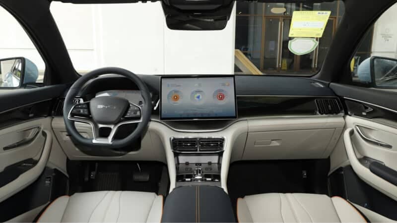 BYD Song Plus Champion Edition получил 15,6-дюймовый экран, который можно поворачивать на 90 градусов. Он также оснащён большой приборной панелью и трёхспицевым рулевым колесом. Что касается селектора передач, то это «ромбовидный» выдвижной переключатель. Он был позаимствован у BYD Seal. Также в оснащение входит система подключения к мобильным устройства DiLink и двухзонный климат-контроль.