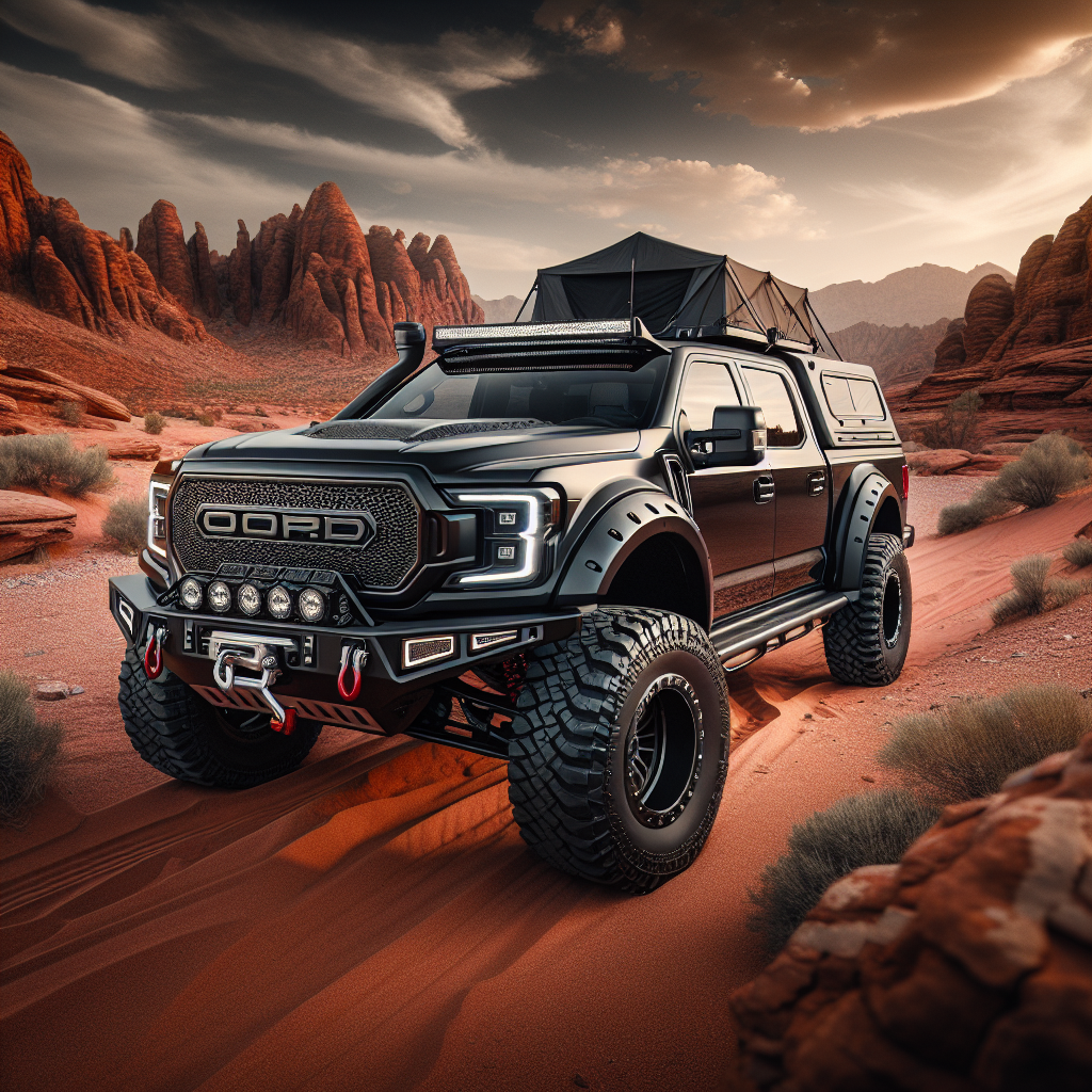 У пикапа есть специальное место крепления на крыше, предназначенное для размещения палатки iKamper, 12 дополнительных фонарей и люк для быстрого доступа в палатку.