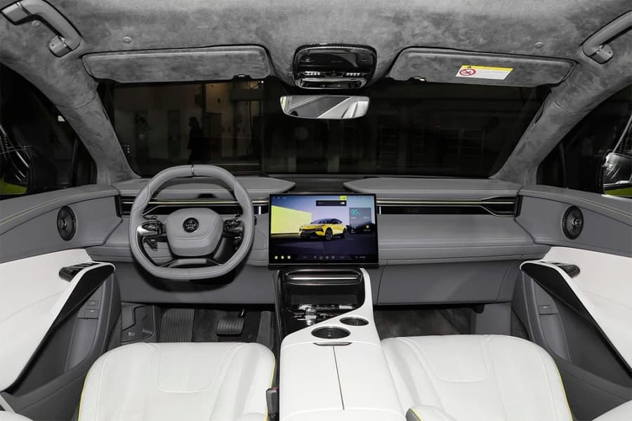 Lotus Eletre — это большой кроссовер. Габариты составляют 5103 х 2019 х 1636 мм, колёсная база — 3019 мм. В оснащении версии S есть обогрев и вентиляция передних сидений, передний и задний парктроники, камера заднего вида, круиз- и климат-контроль.