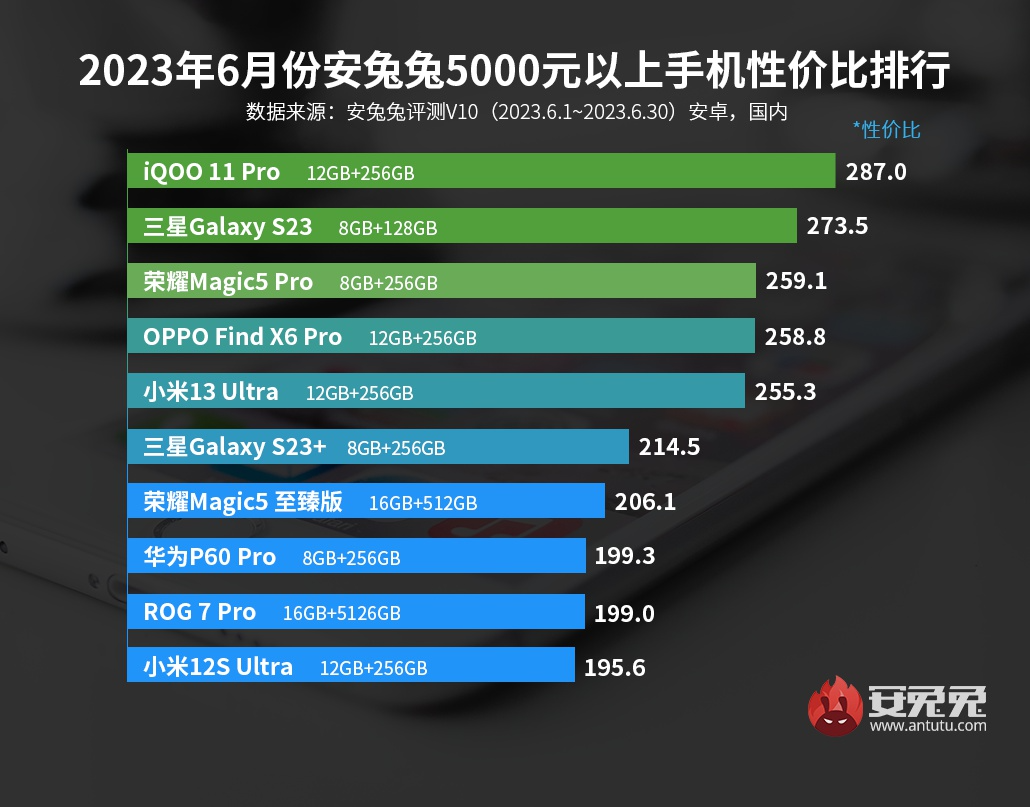 Среди самых дорогих флагманов (от 693 долларов) лидирует iQOO 11 Pro, затем идут Samsung Galaxy S23 и Honor Magic5 Pro.