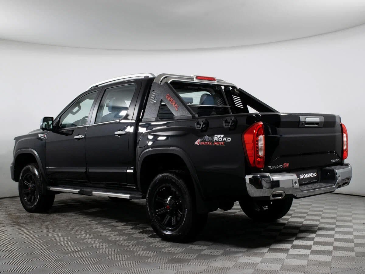 Выставленный на продажу Tunland оснащён 2-литровым бензиновым турбомотором мощностью 238 л.с. и 6-ступенчатым автоматом ZF. Привод, естественно, полный, а кабина двухрядная. Оснащение автомобиля максимальное: двухцветный кожаный салон, люк в крыше, передние сиденья с электрическими регулировками, медиасистема с большим экраном, климат- и круиз-контроль, система кругового обзора и т.д.