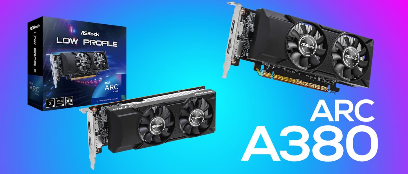 СО тут, как можно видеть, оснащена двумя вентиляторами и простейшим алюминиевым радиатором. Учитывая скромное энергопотребление Arc A380 (75 Вт), этого должно быть вполне достаточно.