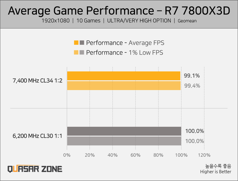 Компания AMD активно улучшает поддержку высокочастотной памяти у процессоров Ryzen 7000, делая их лидерами в этом вопросе. Но вот нужна ли столь быстрая память пользователям? Обзор Quasarzone показывает, что память DDR5-7400 не имеет никаких преимуществ перед DDR5-6200 как минимум в играх.