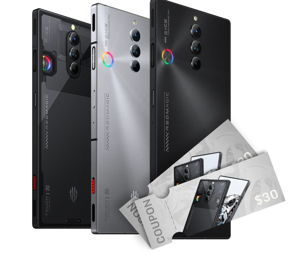 Nubia предлагает сейчас три вариации RedMagic 8S Pro — непрозрачные Midnight (12/256 ГБ) и Platinum (16/512 ГБ), а также Aurora (16/512 ГБ) с прозрачной задней панелью. Все три версии получили видимый вентилятор с RGB-подсветкой.