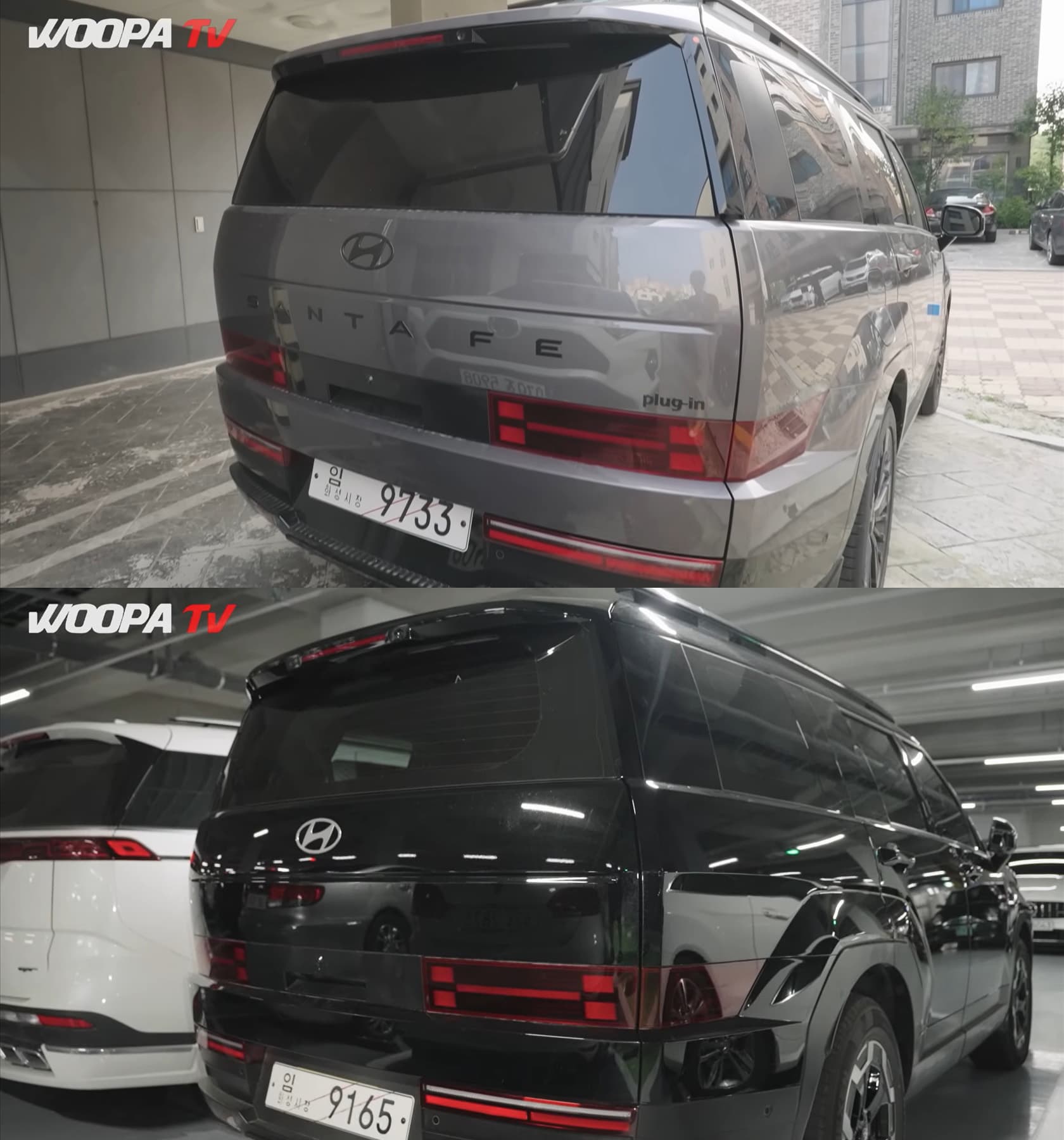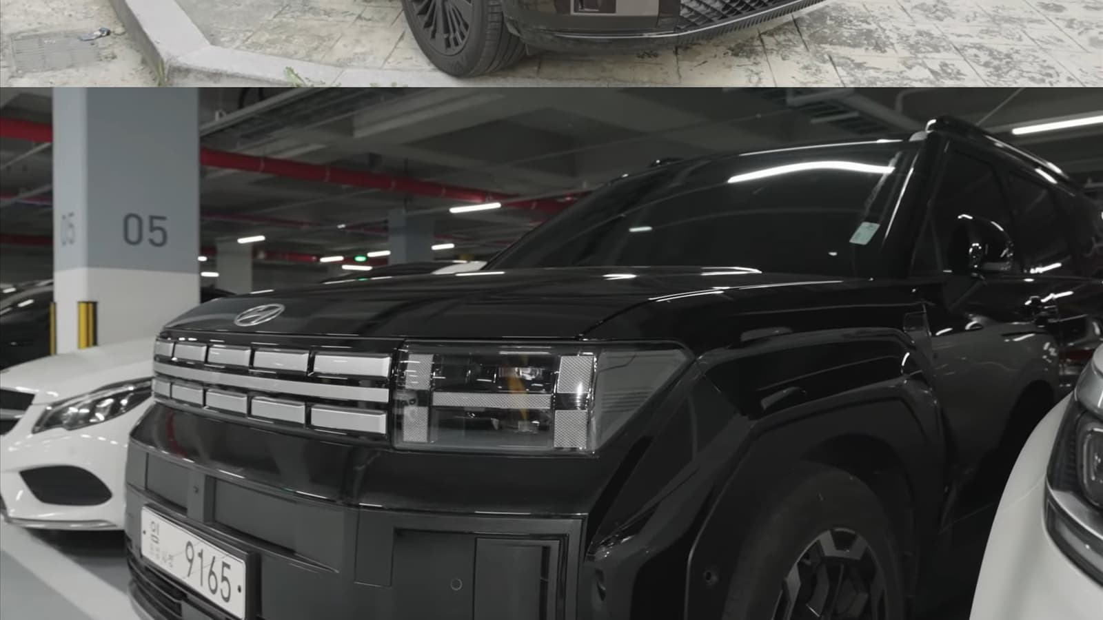 Увы, никаких новых технических подробностей или кадров из салона нет – авто просто засняли на парковке. Однако видеороликов – два, и они демонстрируют два разных варианта. Версия в сером цвете – это подключаемый гибрид (Hyundai о нем пока ни словом не обмолвилась). Тут решетка радиатора по типу «пчелиные соты» и 20-дюймовые колесные диски. Интересно, что на автомобиле есть наклейка с указанием немецкого города Бремерхафен. В нем расположен большой порт – возможно, серый Santa Fe 2024 отправится на экспорт.