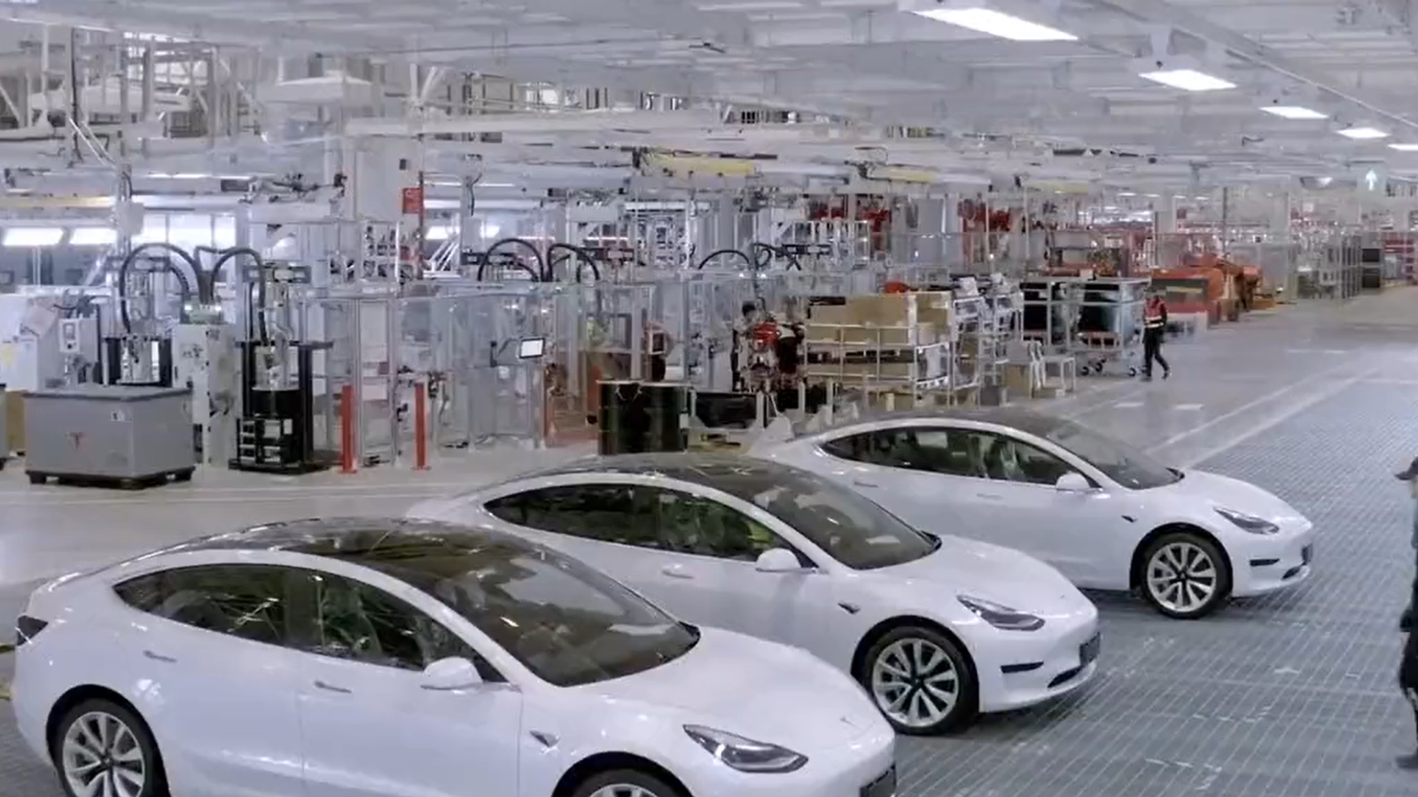 Репортёр задаёт соответствующий вопрос одному из сотрудников, который контролирует сборочный процесс. Сотрудник Tesla упоминает, что информация о 45 секундах, которая всплыла в ходе разговора, уже не соответствует действительности. На сегодня Tesla выпускает новые автомобили менее чем за 40 секунд.