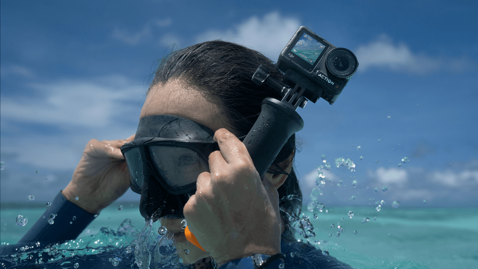Также отмечается водонепроницаемость на глубине до 18 м без использования чехла (IP68), длительное время автономной работы (160 минут) и устойчивость к морозам (150 минут записи при температуре до –20°C), три микрофона, два экрана и возможность вести прямые трансляции с использованием Wi-Fi.