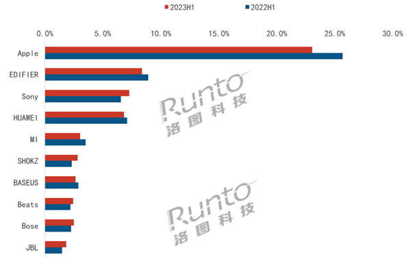 Аналитики Runto поделились статистикой продаж наушников в Китае. В данном случае учитывались все наушники, включая проводные, но, к сожалению, доля тех или иных классов не указана.