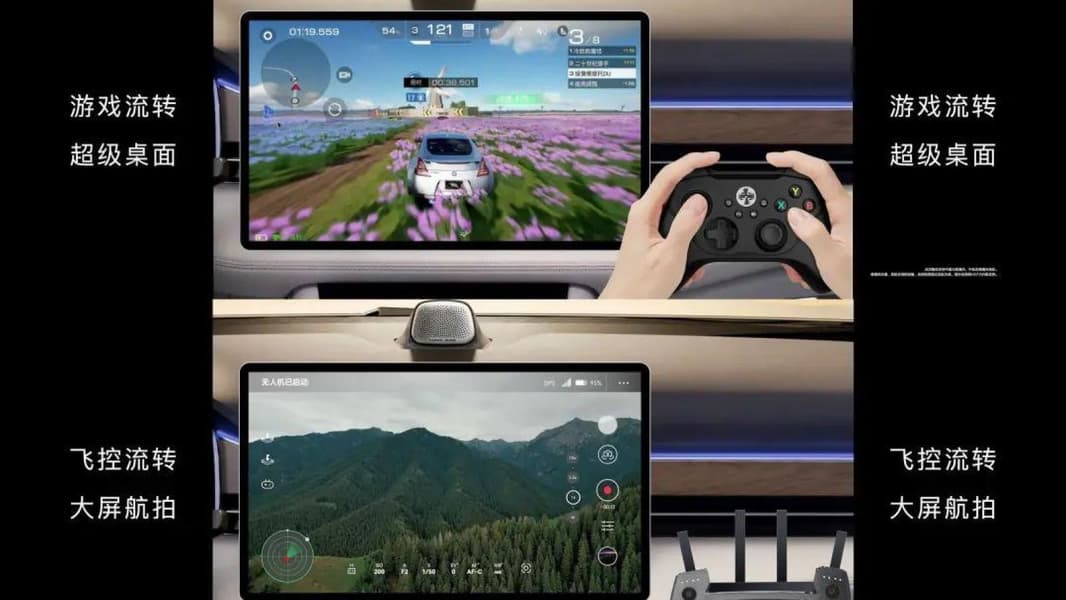 Компьютерная система автомобиля будет работать под управлением операционной системы HarmonyOS 4. Он будет хорошо совместим с телефонами, ноутбуками и другой техникой Huawei. Кроме того, он будет поддерживать видеоигры благодаря платформе Qualcomm Snapdragon 8295 от Qualcomm. Вы сможете подключить к автомобилю квадрокоптер, и он будет транслировать видео прямо на экран автомобиля.