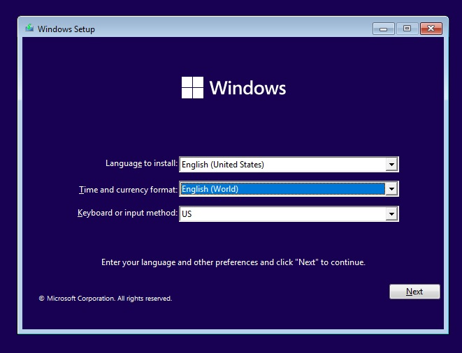 Для этого при установке ОС требуется выбрать регион «English (World)», когда пользователю предлагается выбрать формат времени и чисел, а не местный вариант. Проще говоря, если вы в России, то вместо Russia требуется выбрать English (World).