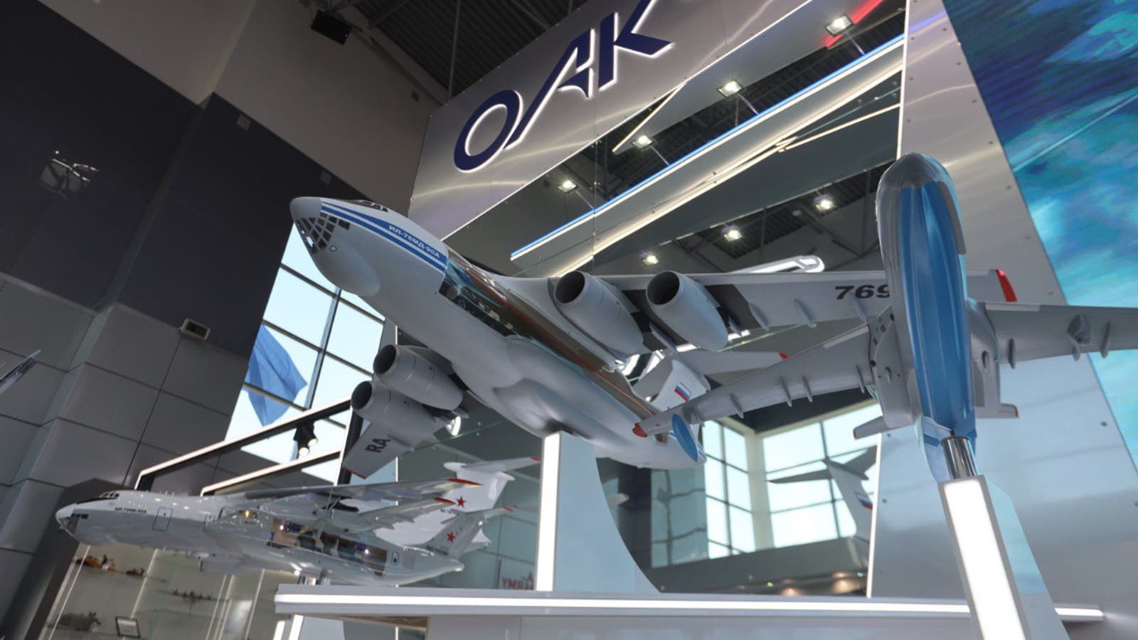 В непосредственной близости от главного входа в павильоны выставки будет демонстрироваться самолёт МиГ-35. В демонстрационном центре ОАК будет представлена мультимедийная экспозиция и линейка выпускаемых предприятиями корпорации самолётов боевой, транспортной, стратегической и специальной авиации в виде моделей Су-34, Су-35, Су-57, Су-30СМ, Як-130, Як-152, Ил-78МК-90А, Ил-76МД-90А, Ил-112В, Ту-160, Ту-22М3, Ту-95МС, МиГ-31, МиГ-35, МиГ-29К и Бе-200. Интерактивные информационные панели позволяют посетителям ознакомиться с характеристиками самолетов.