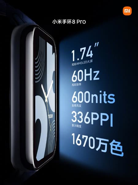 Например, экран AMOLED стал крупнее — диагональ экрана теперь составляет 1,74 дюйма, на 0,1 дюйма больше, чем у Xiaomi Band 7 Pro. Разрешение дисплея составляет 480 х 336 пикселей.