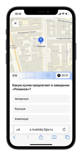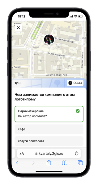Команда популярного справочно-картографического сервиса 2ГИС объявила о запуске игры «Кварталы» на знание районов города — специальный алгоритм генерирует вопросы про район пользователя.
