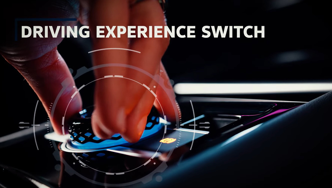 Driving Experience — это круговой селектор, размещённый на центральном тоннеле справа от водителя. В центре него кнопка, с помощью которой происходит выбор функции (например, звук, подсветка или режимы езды), а уже селектором выбираются различные параметры.