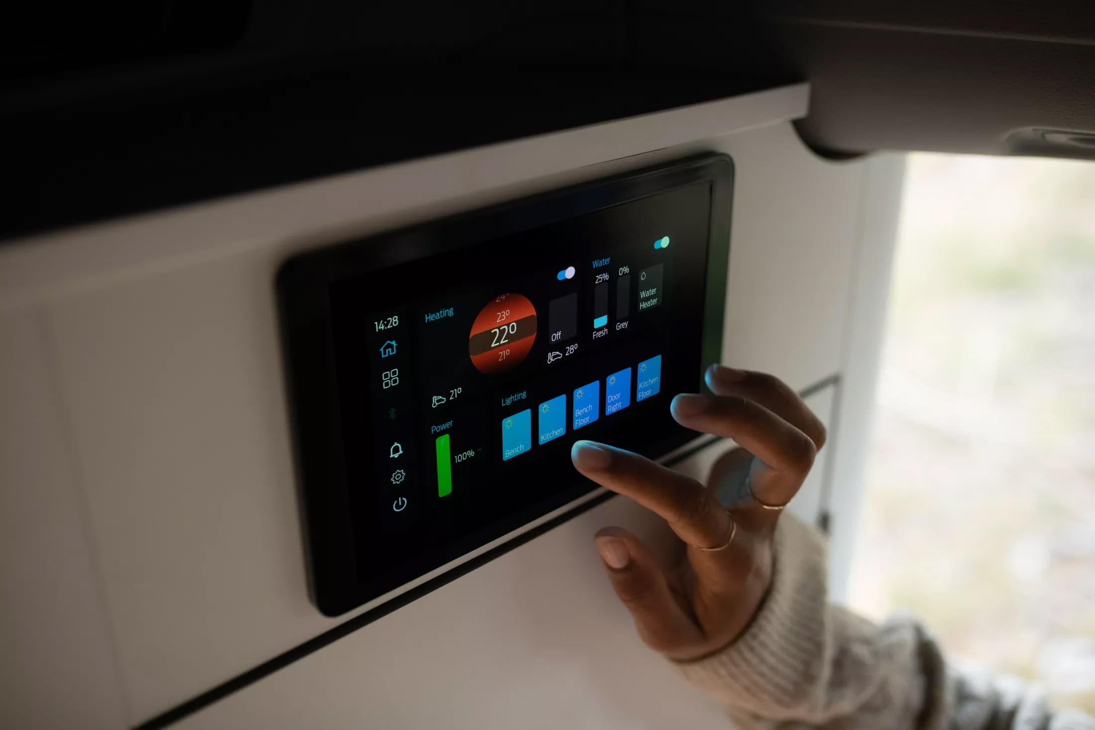 На крыше разместились панели солнечной батареи, а управлять возможностями мобильного дома можно как при помощи 7-дюймового сенсорного экрана, размещённого в задней части, так и со своего смартфона.