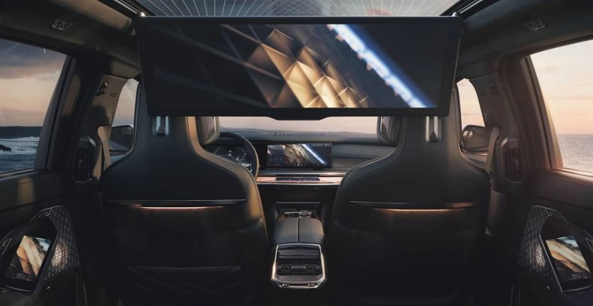 В оснащении BMW i7 M70L цифровая панель приборов с экраном диагональю 12,3 дюйма, медиасистема с экраном диагональю 14,9 дюйма и экран с диагональю 31 дюйм и разрешением 8К для задних пассажиров. И передние, и задние кресла с обогревом, вентиляцией, электрическими регулировками, массажёром и подставкой для ног.