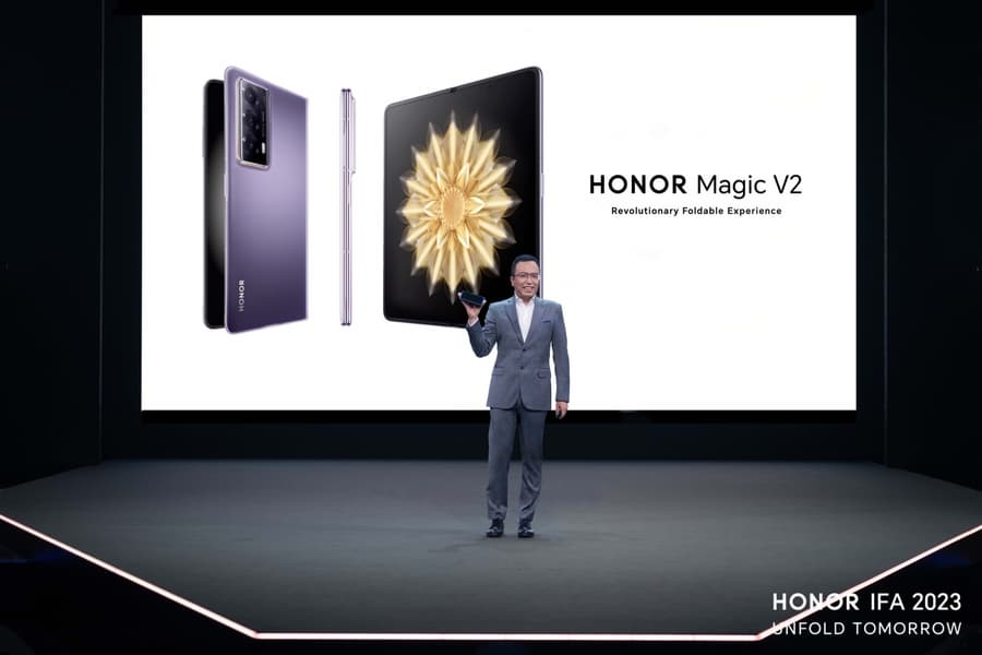 Китайская компания Honor выпустила свой новый складной смартфон Honor Magic V2 в Китае ещё в июле. Однако его официальная презентация для международного рынка состоялась лишь теперь на выставке IFA 2023 в Берлине.