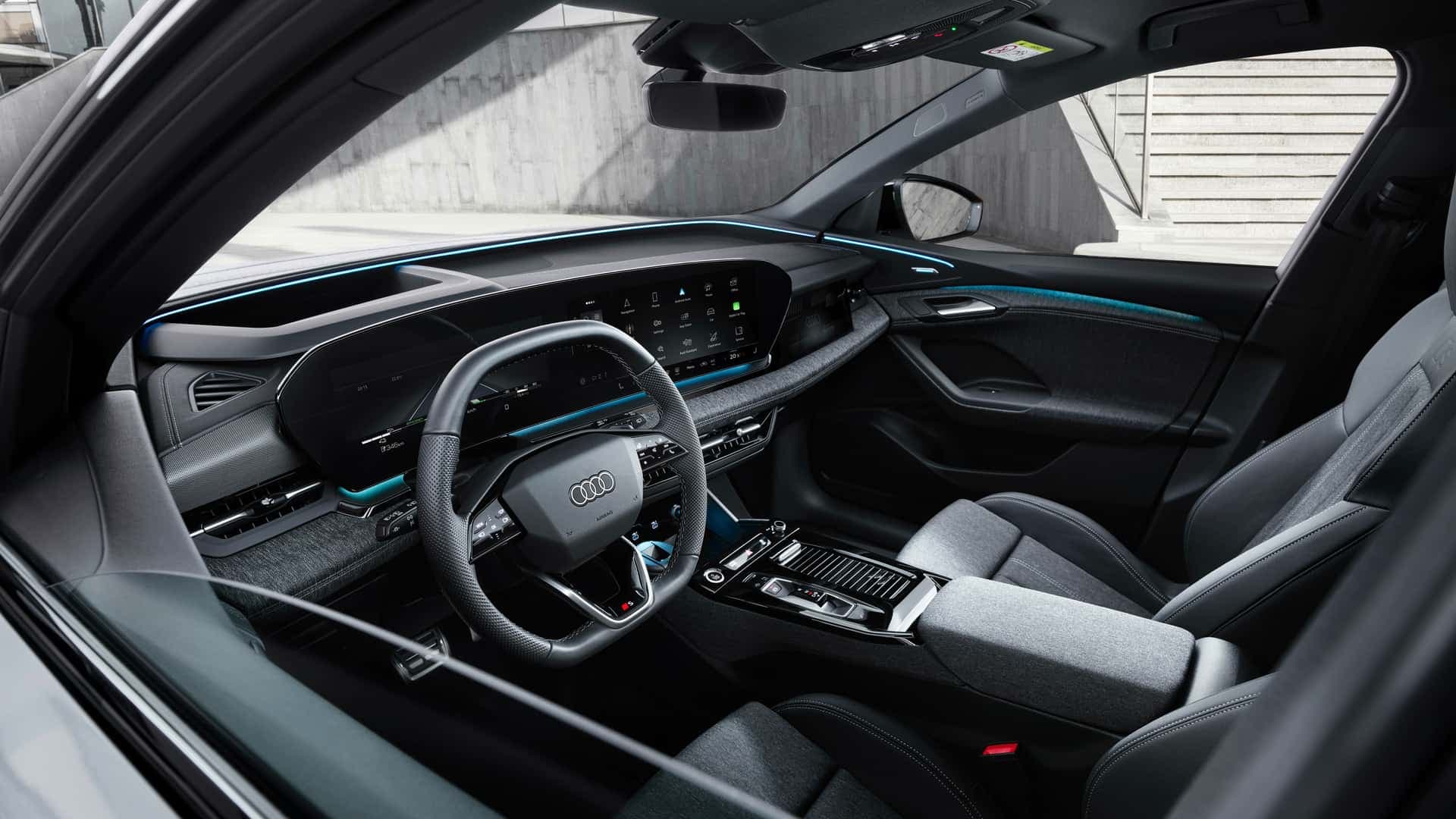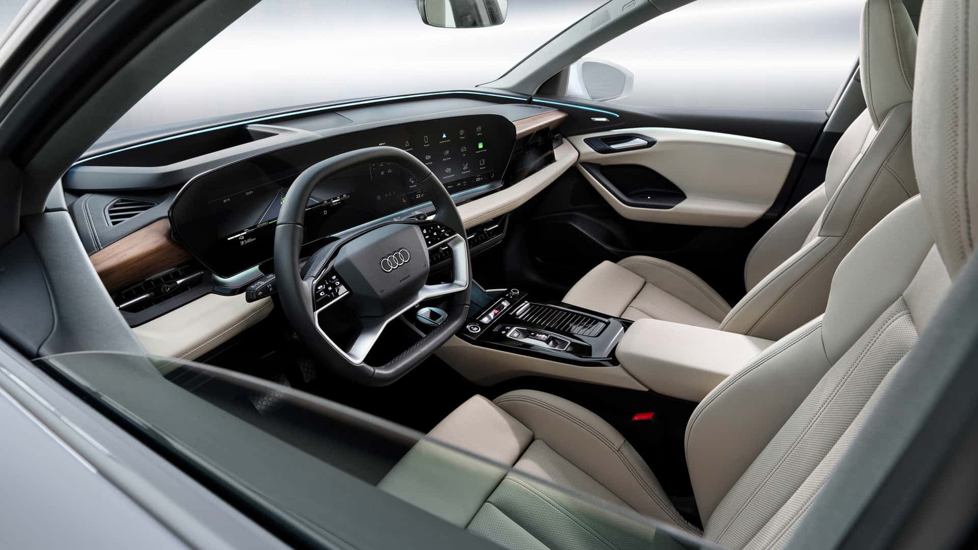 В салоне доминирует то, что Audi называет «цифровой сценой», которая включает в себя отдельно стоящий панорамный дисплей Audi MMI и дисплей MMI для переднего пассажира. Первый имеет изогнутый дизайн и технологию OLED и состоит из 11,9-дюймовой панели приборов Audi и 14,5-дюймового сенсорного дисплея MMI.