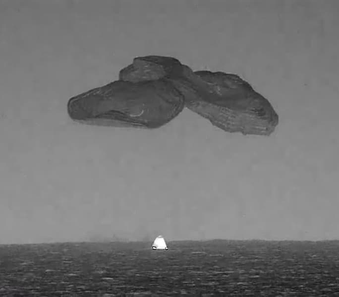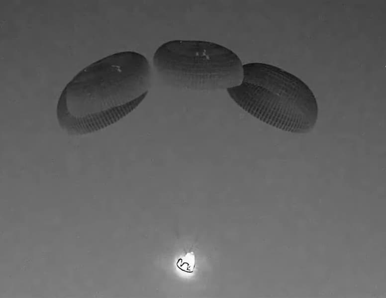 Для возвращения на Землю кораблю и его экипажу понадобилось порядка 17 часов. После того как Crew Dragon прошёл плотные слои атмосферы, на высоте около 5,5 км были выпущены его основные парашюты.