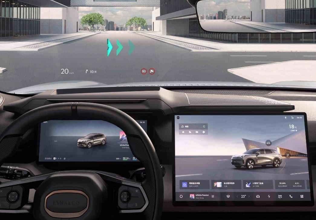 Внутри цифровая панель приборов с экраном диагональю 12,3 дюйма, медиасистема с экраном диагональю 15,4 дюйма, большой проекционный дисплей диагональю 92 дюйма и ОС Flyme Auto от Meizu. Создатели машины говорят, что в аппаратной платформе информационно-развлекательной системы применяются две 7-нанометровые SoC собственной разработки, которые по вычислительной мощности эквивалентны двум SoC Qualcomm Snapdragon 8155.