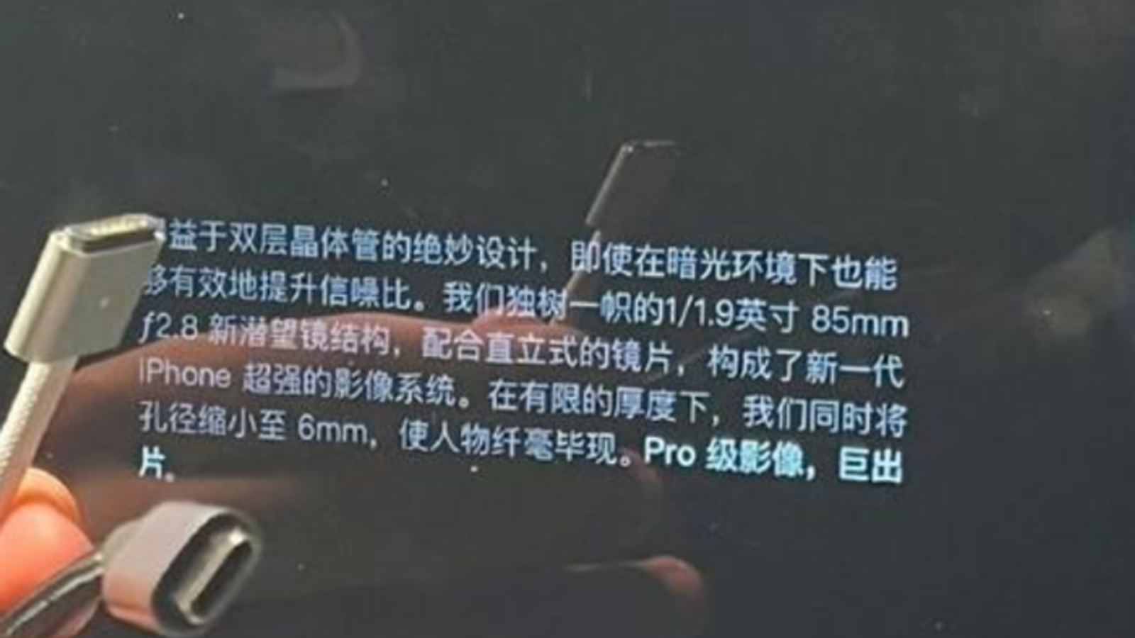 На сайте Mydrivers опубликовали снимок экрана, на котором якобы присутствует описание одной из камер флагманского смартфона iPhone 15 Pro Max.