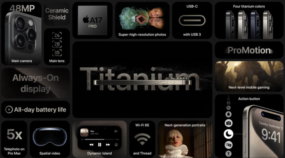 Цены составляют 1000 и 1200 долларов за версии iPhone 15 Pro и iPhone 15 Pro Max со 128 ГБ. Предзаказы начнутся в пятницу, а продажи стартуют 22 сентября.