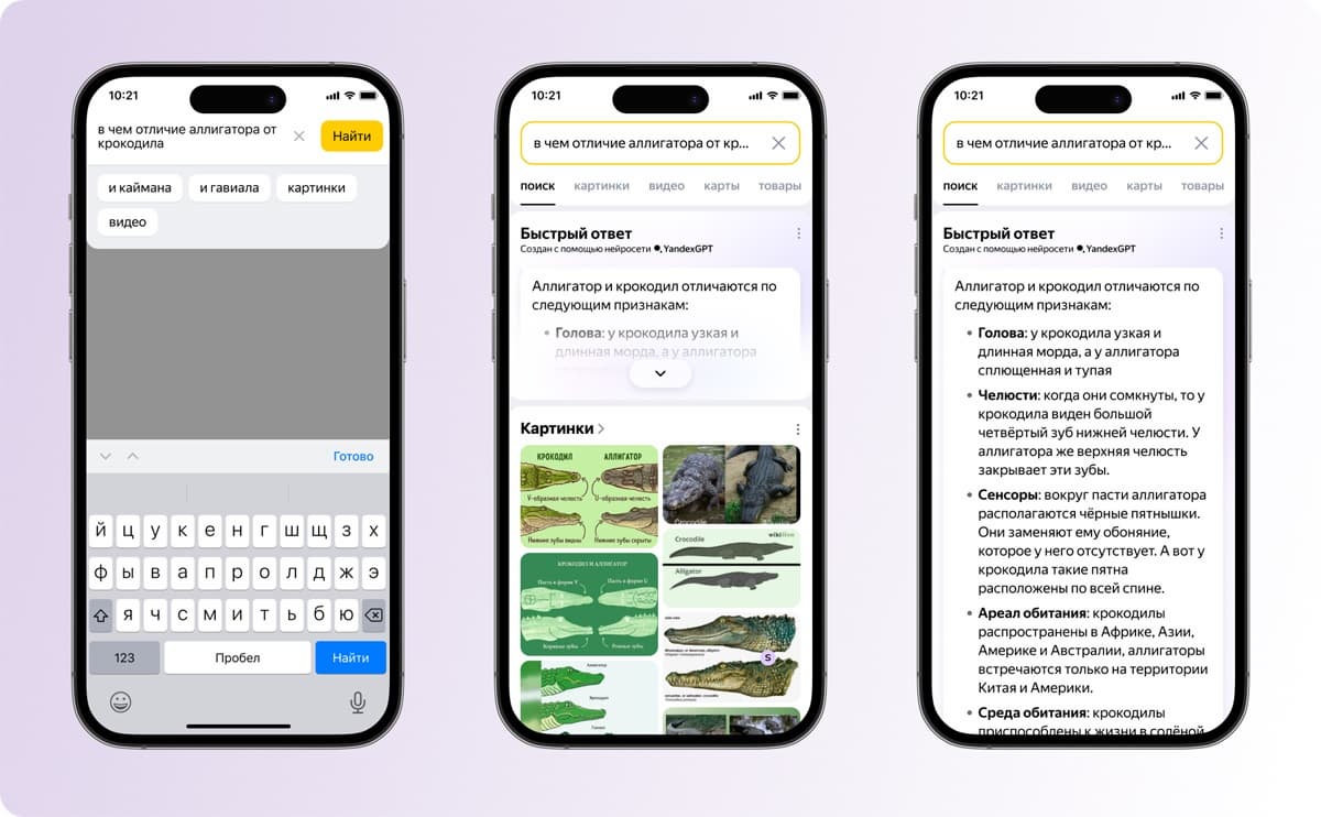 Для создания быстрого ответа YandexGPT в режиме реального времени находит несколько самых подходящих источников по запросу пользователя. Затем нейросеть делает краткую выжимку информации каждого из них, выбирает из получившихся вариантов наиболее полезный ответ и показывает его под поисковой строкой вместе со ссылкой на источник. Это нужно, чтобы пользователи могли получить дополнительные подробности по интересующей теме, а площадки — переходы на сайт.