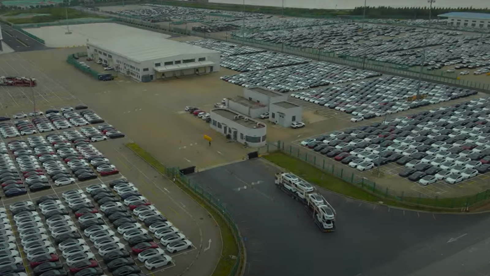 Кадры с дрона WuWa показывают, что на площадке Tesla в порту Нанькан в Шанхае установлено большое количество обновлённых седанов Tesla Model 3. Издание insideevs утверждает, что в видеоролик попали более 3000 автомобилей.