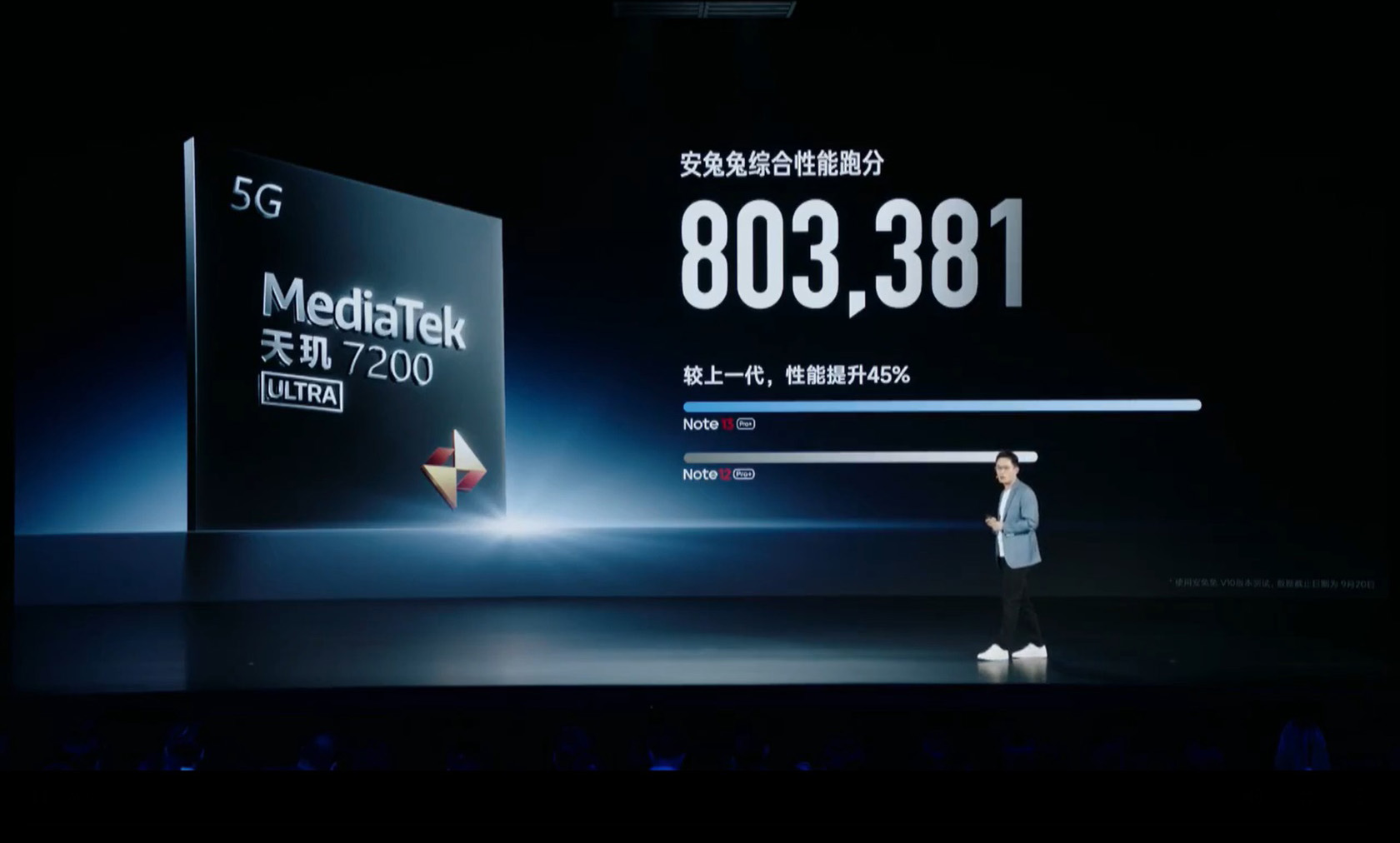Аппаратная платформа новинки — SoC MediaTek Dimensity 7200 Ultra. Производительность смартфона в AnTuTu — чуть более 800 тыс. баллов. За охлаждение SoC отвечает испарительная камера площадью 4000 мм2. В топовой версии 16 ГБ ОЗУ и 512 ГБ флеш-памяти.