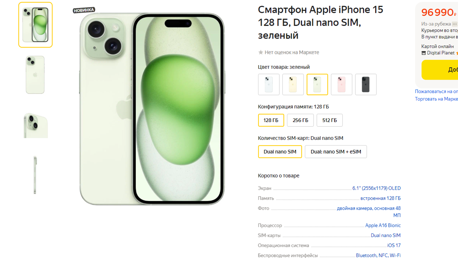 «Яндекс Маркет» уже начал продавать новую партию iPhone 15 со 128 и 256 ГБ флеш-памяти. На текущий момент маркетплейс продаёт смартфоны по самой выгодной цене относительно других крупных ретейлеров. iPhone 15 со 128 ГБ флеш-памяти предлагают за 96 990 рублей, а с 256 ГБ — за 101 990 рублей. Смартфоны обещают доставить 3 октября.