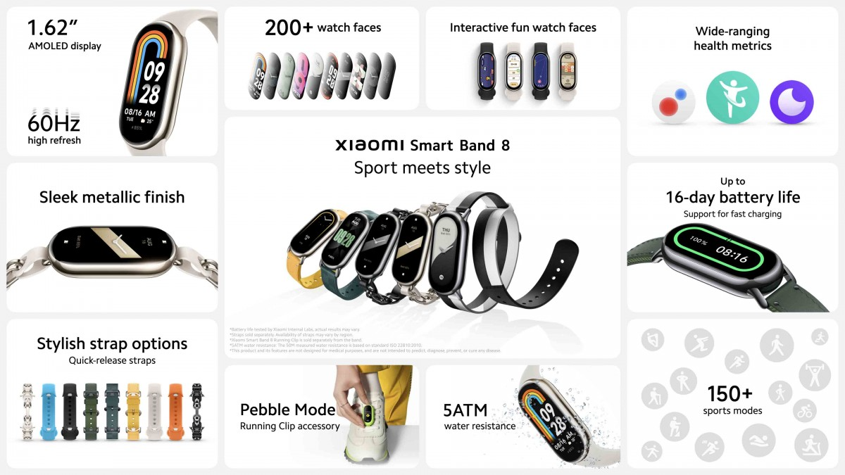 Пользователям за пределами Китая предлагается только версия Xiaomi Smart Band 8 без поддержки NFC, но со всем богатством выбора ремешков, цепочек и прочих креплений. Новый фитнес-гаджет можно с лёгкостью носить не только на руке, но и в виде кулона на цепочке или как клипсу, например, на ноге.