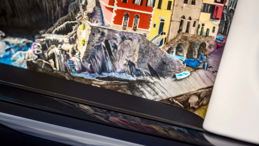 Cinque Terre в переводе означает «пять земель». Этот термин относится к деревням на скалах Монтероссо, Вернацца, Корнилья, Манарола и Риомаджоре в итальянской Лигурии в северной части страны, граничащей со Средиземным морем. Эти города славятся рыбной ловлей и террасными виноградниками на холмах. Салон украшен картинами, вдохновлёнными пятью деревнями. Одна из них находится на приборной панели, ещё одна — в перчаточном ящике.