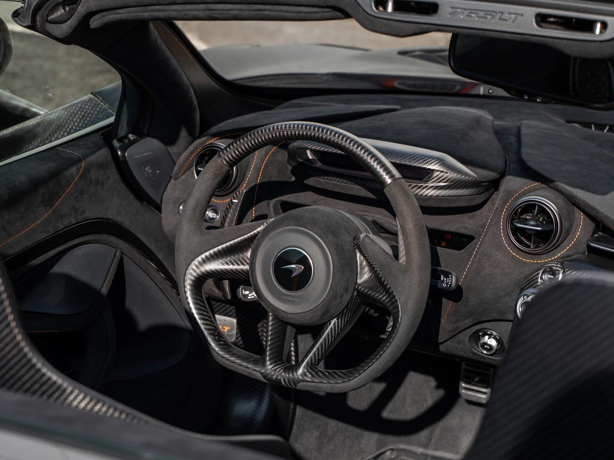 McLaren 765 LT Carbon Edition построен на базе спайдера McLaren 765LT. Автомобиль оснащён 765-сильным 4-литровым турбированным мотором и роботизированной коробкой передач. До 100 км/ч автомобиль разгоняется за 2,8 с.