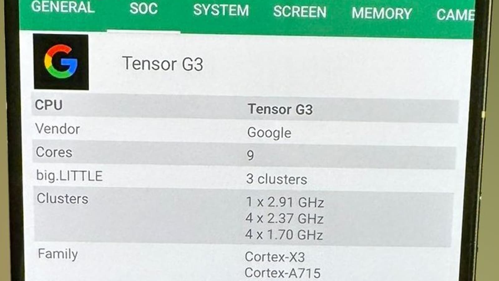 This is Tech Today опубликовал видео с короткой распаковкой двух новинок, а также скриншоты, где можно видеть параметры SoC Tensor G3.