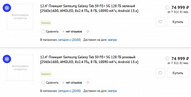 Планшеты уже представлены в каталоге DNS. Стоимость Galaxy Tab S9 FE 5G со 128 ГБ флеш-памяти — 57 тыс. рублей. Версия этого устройства с 256 ГБ флеш-памяти оценена в 64 тыс. рублей. А самый простой вариант Galaxy Tab S9 FE (без 5G и со 128 ГБ флеш-памяти) оценён в 47 тыс. рублей.