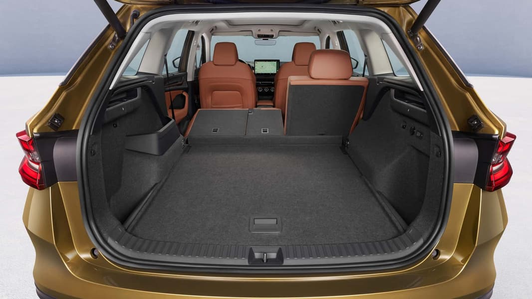 Габариты Skoda Kodiaq 2024 составляют 4758 × 1864 × 1659 мм при длине колёсной базы 2791 мм. Межосевое расстояние не изменилось, но новые компоновочные решения сделали автомобиль чуть просторнее, а багажник — чуть больше.
