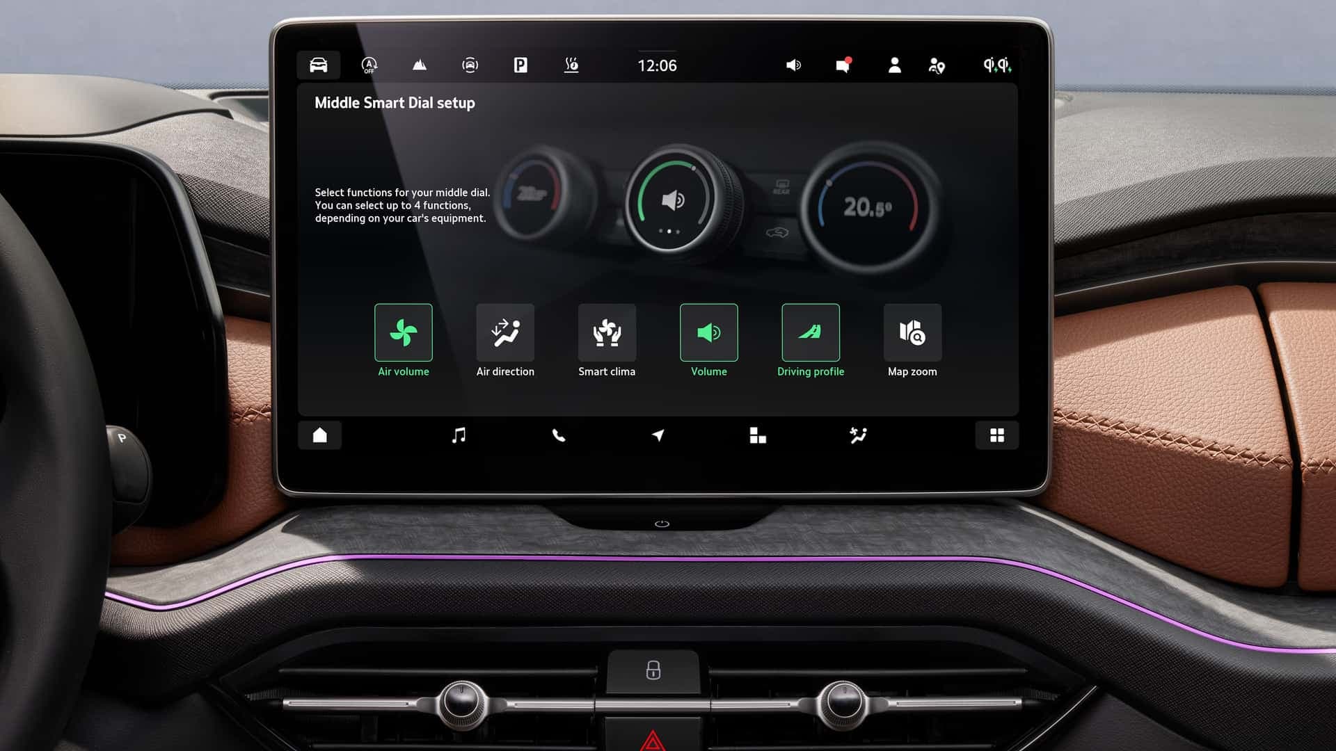 Наружные регуляторы позволяют водителю и пассажиру регулировать температуру системы климат-контроля, управлять вентиляцией и подогревом сидений. С помощью центрального Smart Dial можно регулировать громкость медиасистемы, направления обдува и т.д. Все остальные функции контролируются через экран информационно-развлекательной системы (в базе — 10-дюймовый, в топовых версиях — 13-дюймовый). Перед водителем цифровая приборная панель, «нарисованная» на 10-дюймовом экране. Также есть проекционный дисплей нового поколения.