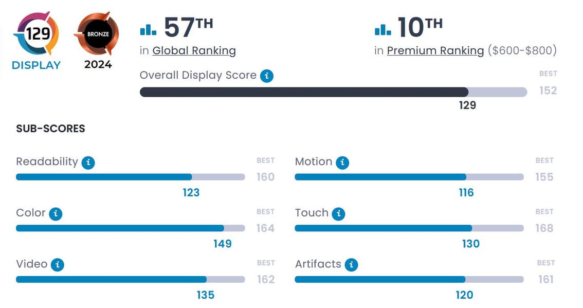 В итоге за качество экрана и отображаемой картинки Xiaomi 13T Pro получили 129 баллов. Напомним, на первом месте в категории находится Samsung Galaxy Z Fold5 с результатом 157 баллов.
