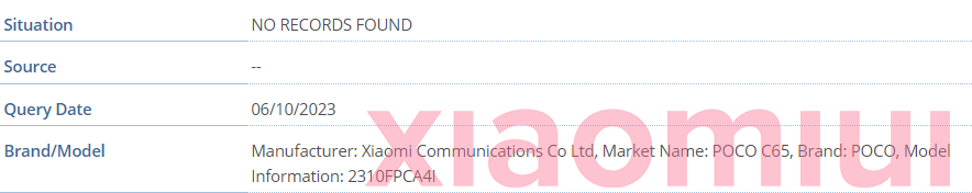 Бренд Poco скоро выведет на рынок бюджетную модель Poco C65. Аппарат уже засветился в базе GSMA IMEI под обозначениями 2310FPCA4G и 2310FPCA4I.