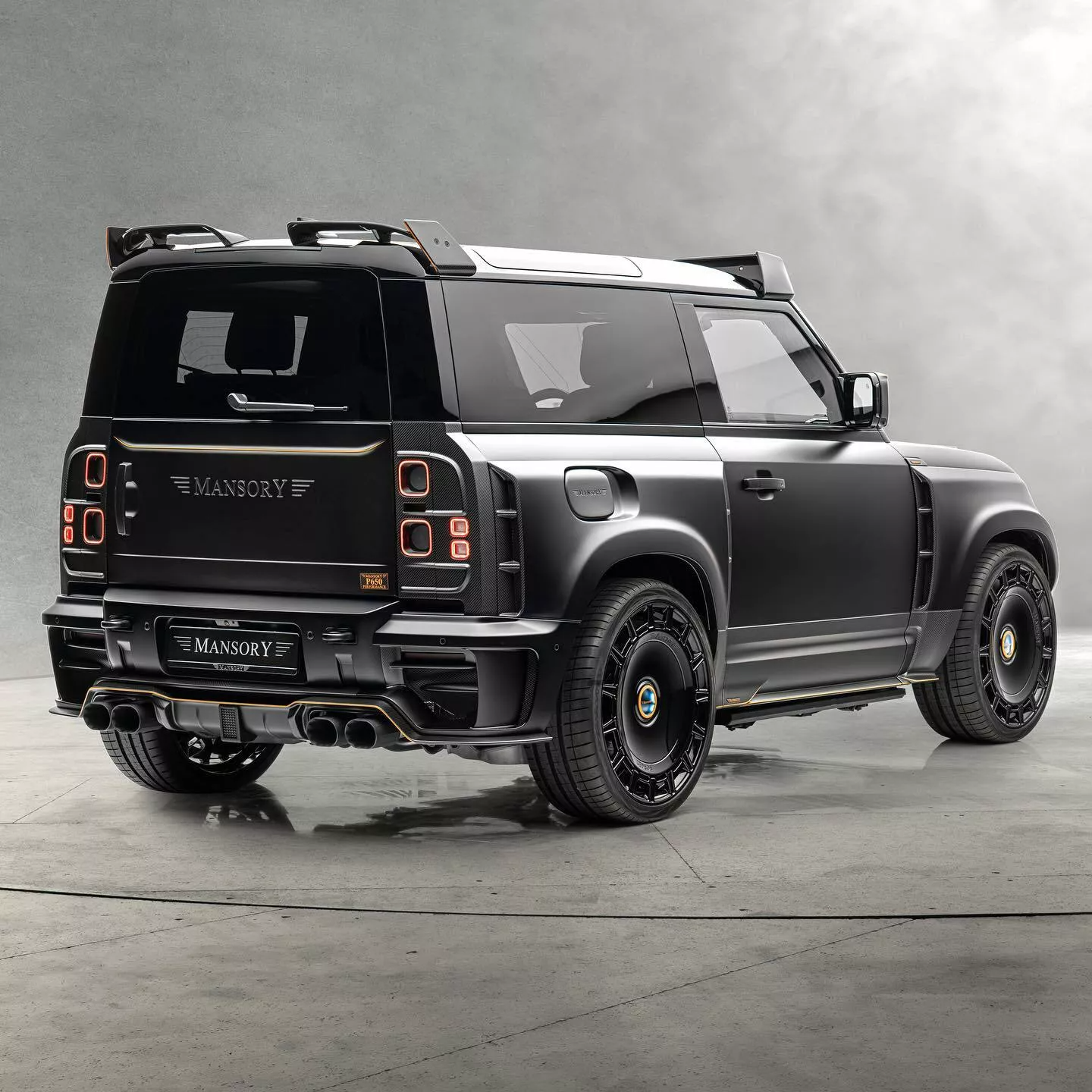 Модифицированный Defender от Mansory получил название Land Rover Defender V8 Black Edition, он полностью выполнен в чёрном цвете. Компания создала для Defender новый обвес, который начинается с радикально переработанной решётки радиатора, окрашенной в чёрный цвет и дополненной новыми воздухозаборниками.