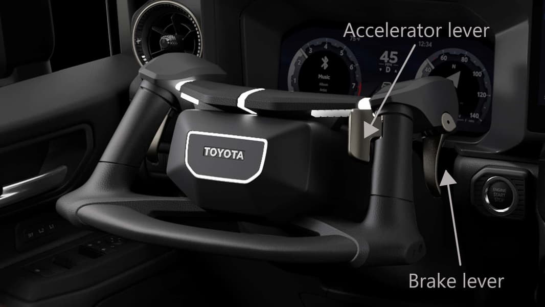 Теперь этот комплекс заменяет рулевой штурвал под названием NEO Steer, на который вынесли регуляторы управления замедлением и газом. То есть управлять внедорожником можно будет примерно как мотоциклом – исключительно руками. Это сделано для людей, с нарушением функции нижних конечностей. Например, с переломом позвоночника.