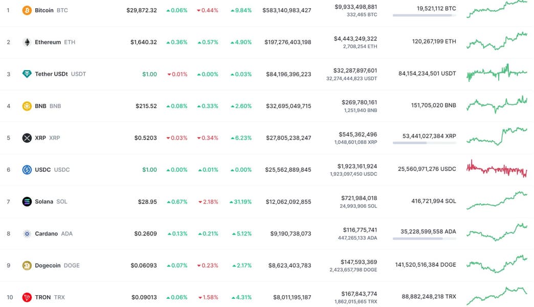 За прошедшие семь дней Bitcoin прибавил 10% – главная криптовалюта мира завершает неделю у отметки в 30 тыс. долларов. Ethreum прибавила около 5%, цена поднялась выше отметки в 1,6 тыс. долларов.