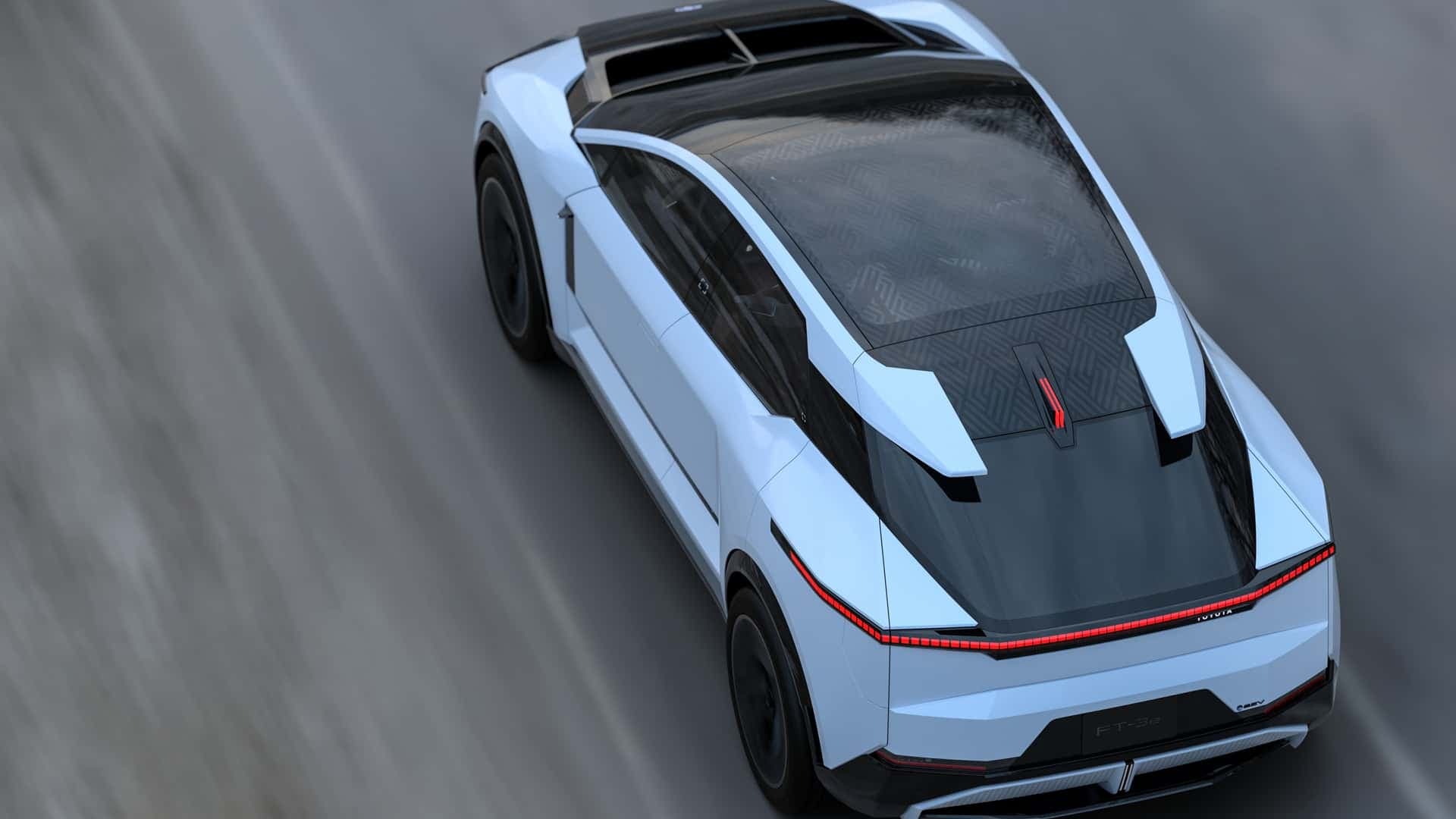 Одна из «фишек» FT-3e — экраны снаружи передних дверей: по задумке, они будут сообщать водителю и пассажирам о температуре в салоне, качестве воздуха и уровне заряда аккумулятора. А квадраты, встроенные в боковые стойки, — это, видимо, сканеры отпечатков пальцев для доступа в автомобиль.