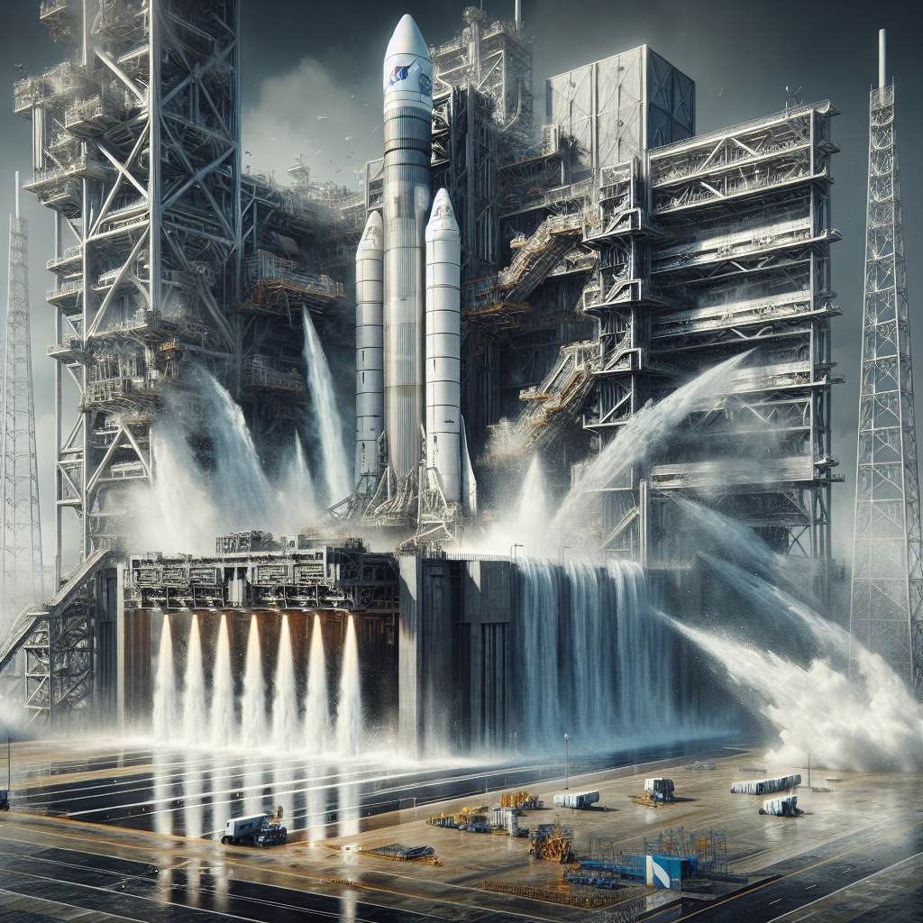Во время старта 400 000 галлонов [1 514 164 литров] воды хлынут на площадку, чтобы помочь защитить ракету NASA SLS, космический корабль Orion, мобильную пусковую установку и стартовую площадку от любого избыточного давления и сильного звука, возникающего во время зажигания и взлёта.