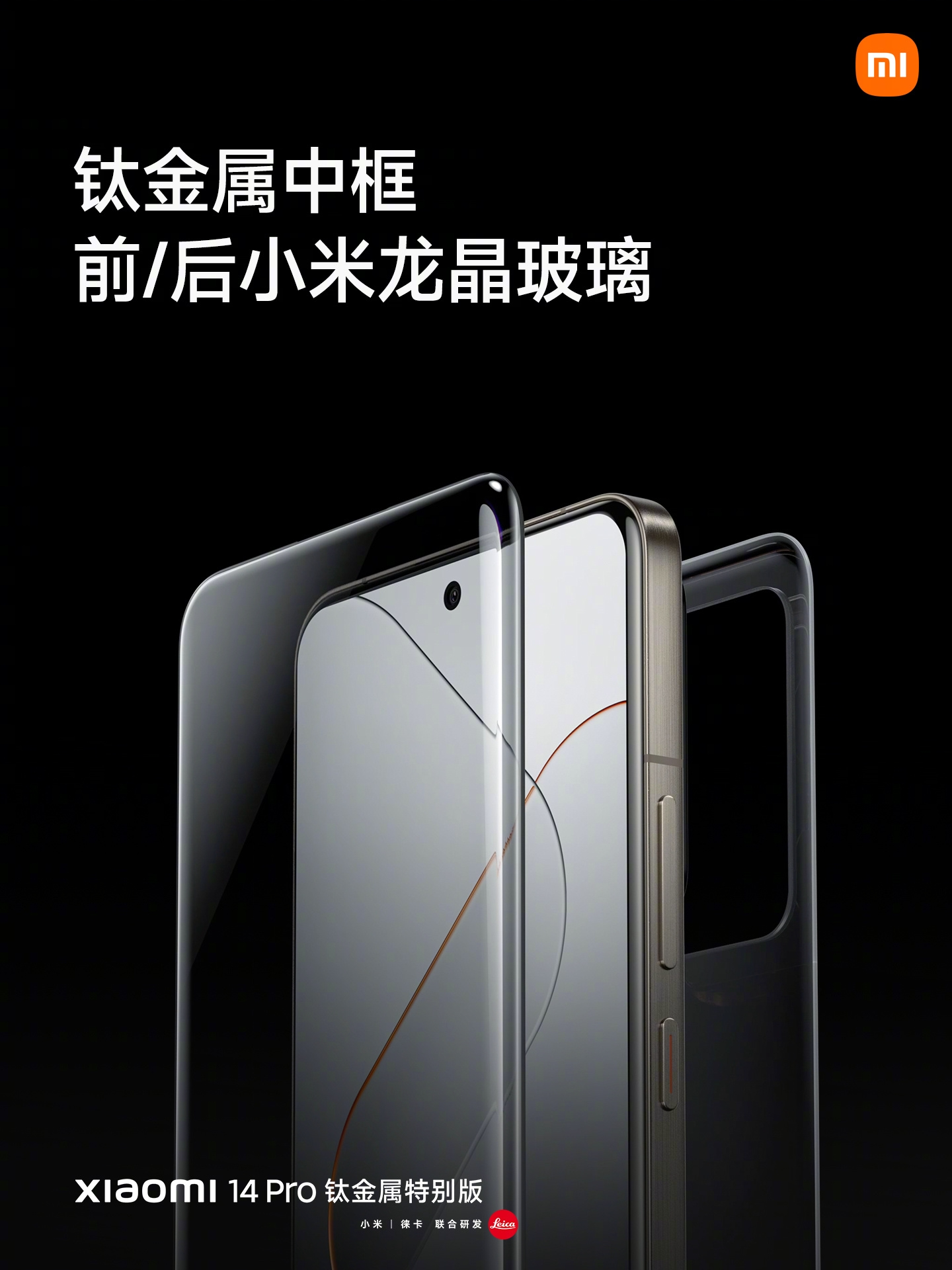 Блок камеры украшен оранжевым акцентом, который сразу же даёт понять, что это титановая версия. Передняя и задняя панели Mi Pro Titanium Special Edition покрыты стеклом Xiaomi Dragon Crystal, которое намного прочнее и твёрже обычного стекла. Устойчивость к падению увеличена в 10 раз, устойчивость к царапинам повышена в 1,32 раза. Тесты показали, что оно прочнее, чем стёкла iPhone 15 и всех конкурентов.