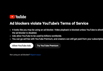 YouTube полностью запрещает просмотр видео при обнаружении блокировщиков рекламы