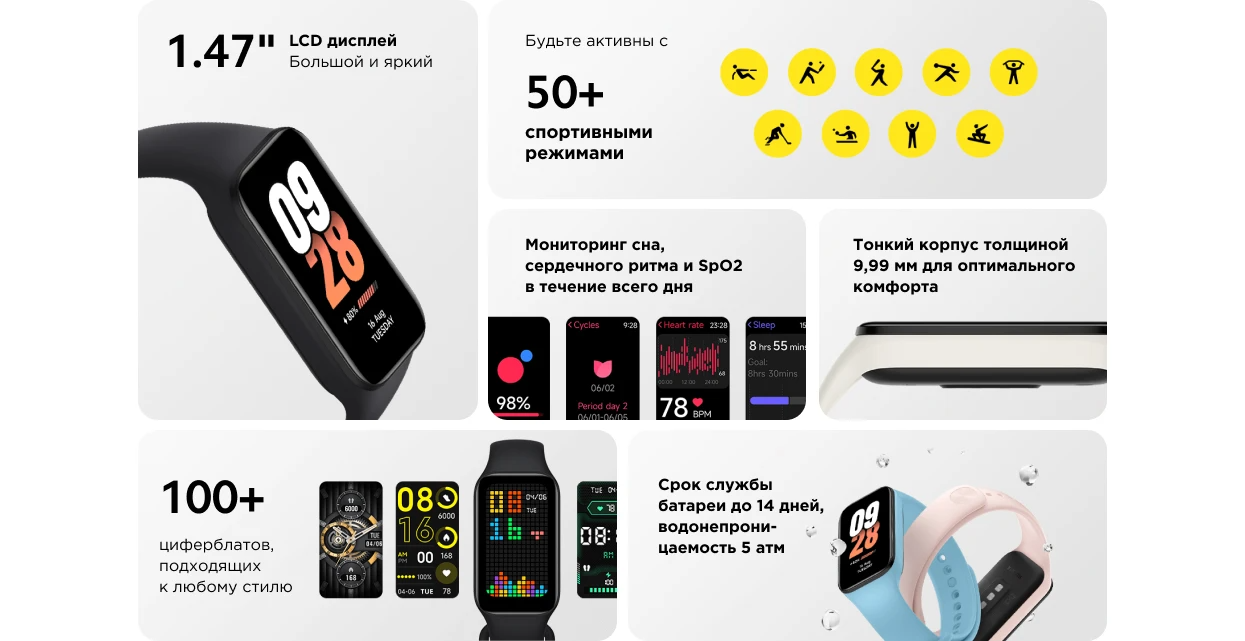 В отличие от модной модели Xiaomi Smart Band 8, также дебютировавшей в сентябре, это более простая, доступная и привычная версия браслета. У Xiaomi Band 8 Active не предусмотрено такого разнообразия креплений, предлагается обычный ремешок в нескольких расцветках. Стоимость составляет 2 490 рублей. Отметим, что российские продажи Xiaomi Smart Band 8 начались заметно раньше по цене 3999 рублей.