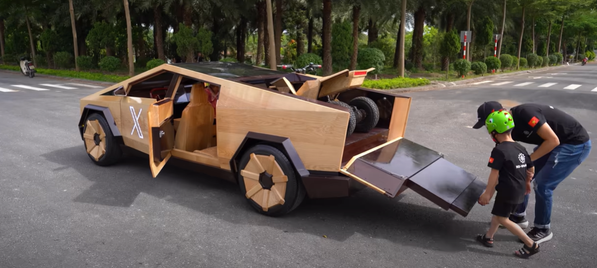 ND Woodworking Art построил деревянный Tesla Cybertruck в качестве подарка, который он собирается вручить Илону Маску. Автор проекта потратил 100 дней на моделирование и изготовление вручную миниатюрной деревянной копии Tesla Cybertruck в комплекте с соответствующим Cyberquad.