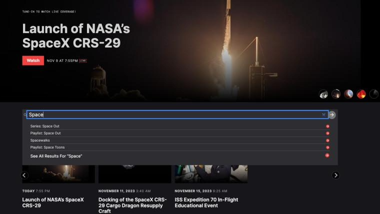 Пользователям предлагаются прямые трансляции, коллекция документальных фильмов о миссиях NASA, а также научных сериалы, обучающие ролики для детей и космических музыкальных видео.